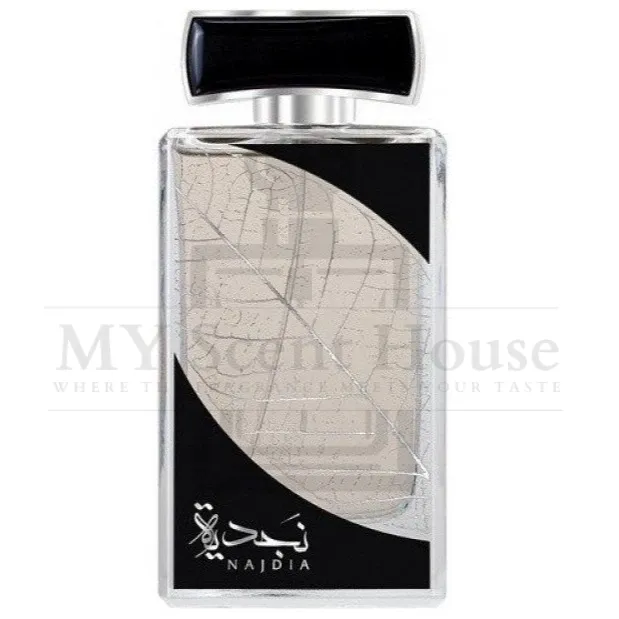 Najdia by Lattafa Perfumes is a Aromatic Aquatic fragrance for women and men. Najdia was launched in 2020. Top notes are Lemon, Cinnamon, Apple, Lemongrass and Bergamot; middle notes are Watery Notes, Lavender, Cardamom and Rosemary; base notes are Musk, Amber, Sandalwood, Cedar and Tobacco.