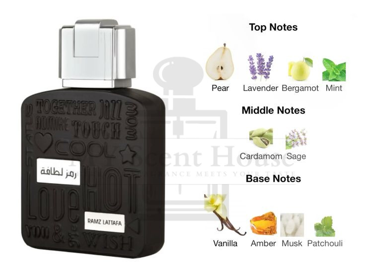 Ramz Lattafa Silver by Lattafa Perfumes is a Oriental Vanilla fragrance for women and men. Ramz Lattafa Silver was launched in 2021. Top notes are Pear, Lavender, Bergamot and Mint; middle notes are Cardamom and Sage; base notes are Vanilla, Amber, Musk and Patchouli.