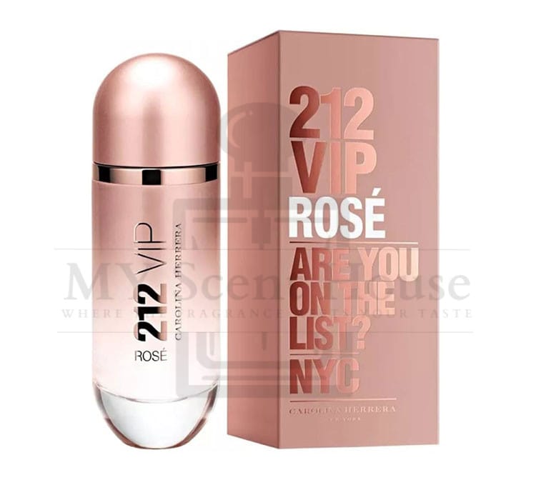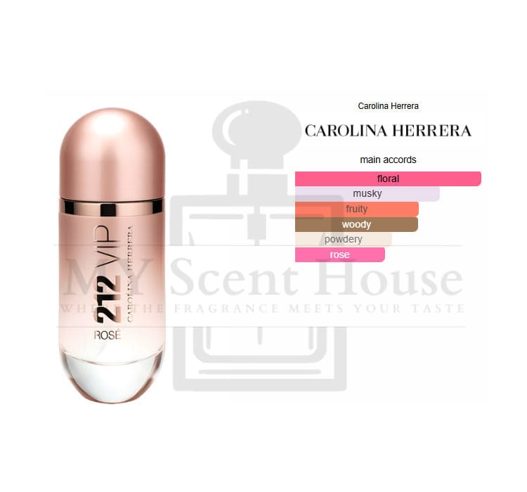 212 VIP Rosé by Carolina Herrera is a Floral Fruity fragrance for women. 212 VIP Rosé was launched in 2014. The nose behind this fragrance is Lucas Sieuzac. Top notes are Champagne Rosé and Pink Pepper; middle notes are Peach Blossom and Rose; base notes are White Musk and Woody Notes.