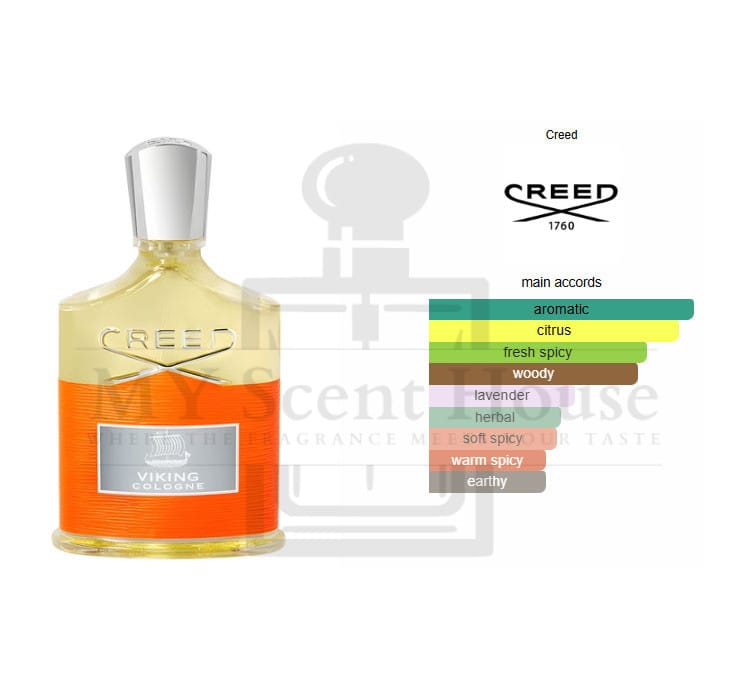 Viking Cologne by Creed is a Aromatic Fougere fragrance for men. Viking Cologne was launched in 2021. Viking Cologne was created by Olivier Creed and Erwin Creed. Top notes are Mandarin Orange, Lemon, Pink Pepper and Bergamot; middle notes are Lavender, Geranium, Rosemary, Sage and Nutmeg; base notes are Vetiver, Sandalwood, Cedar, Olibanum and Patchouli.