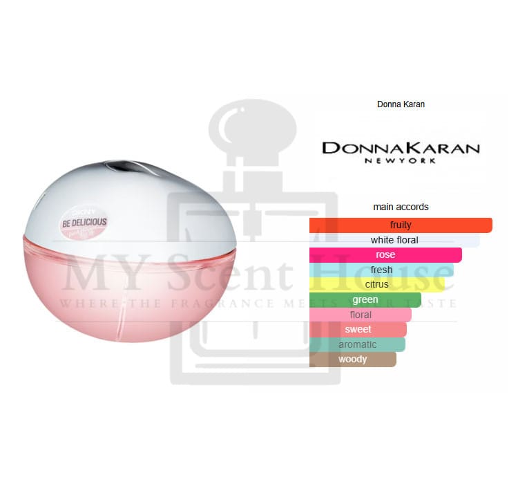 DKNY Be Delicious Fresh Blossom by Donna Karan is a Floral Fruity fragrance for women. DKNY Be Delicious Fresh Blossom was launched in 2009. Top notes are Grapefruit, Apricot and Cassis; middle notes are Rose, Lily-of-the-Valley and Jasmine; base notes are Red Apple and Woodsy Notes.
