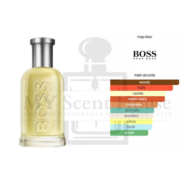 Boss Bottled by Hugo Boss is a Woody Spicy fragrance for men. Boss Bottled was launched in 1998. Boss Bottled was created by Annick Menardo and Christian Dussoulier. Top notes are Apple, Plum, Bergamot, Lemon, Oakmoss and Geranium; middle notes are Cinnamon, Mahogany and Carnation; base notes are Vanilla, Sandalwood, Cedar, Vetiver and Olive Tree.