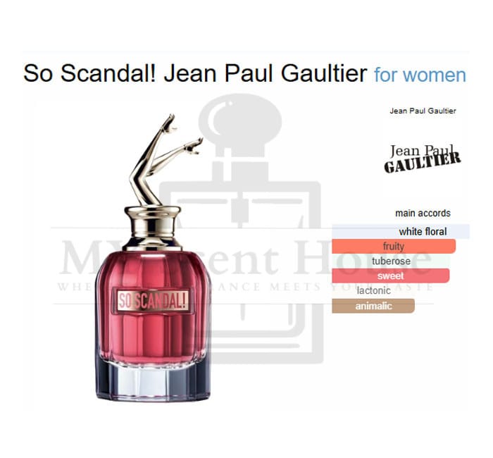 So Scandal! by Jean Paul Gaultier is a Floral Fruity fragrance for women. So Scandal! was launched in 2020. So Scandal! was created by Fabrice Pellegrin and Daphné Bugey.