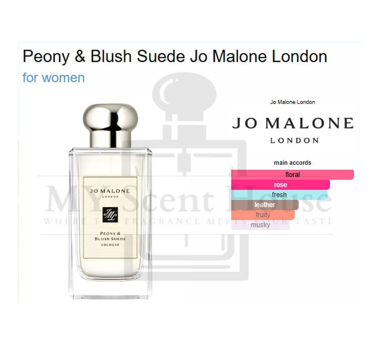 Peony & Blush Suede by Jo Malone London is a Floral fragrance for women. Peony & Blush Suede was launched in 2013. The nose behind this fragrance is Christine Nagel. Top note is Red Apple; middle notes are Peony, Rose, Jasmine and Carnation; base note is Suede.