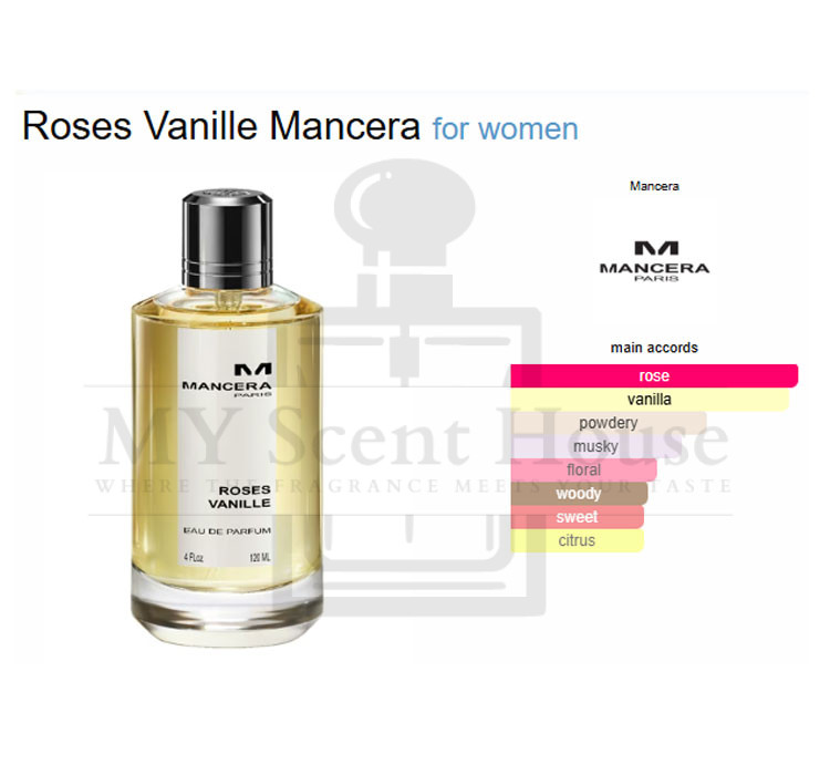 Roses Vanille by Mancera is a Oriental Vanilla fragrance for women. Roses Vanille was launched in 2011. The nose behind this fragrance is Pierre Montale. Top note is Italian Lemon; middle note is Turkish Rose; base notes are Vanilla, White Musk and Cedar.