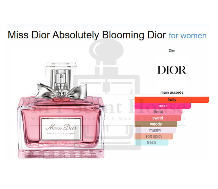 Miss Dior Absolutely Blooming by Dior is a Floral Fruity fragrance for women. Miss Dior Absolutely Blooming was launched in 2016. The nose behind this fragrance is François Demachy. Top notes are Raspberry, Black Currant, Pomegranate and Pink Pepper; middle notes are May Rose and Peony; base note is White Musk.
