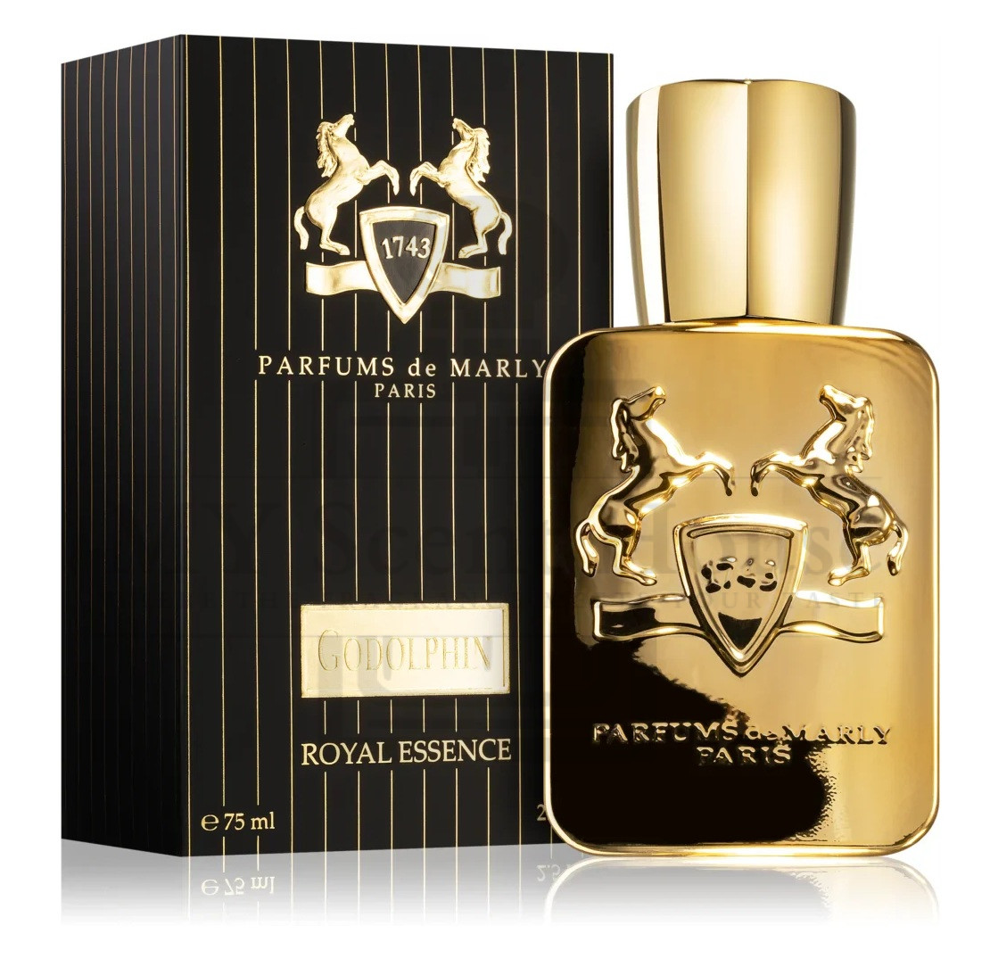 Godolphin by Parfums de Marly is a Leather fragrance for men. Godolphin was launched in 2010. The nose behind this fragrance is Michèle Saramito. Top notes are Fruity Notes, Saffron, Mate, Thyme, Cypress and Green Notes; middle notes are Rose, Orris and Jasmine; base notes are Leather, Amber, Virginia Cedar, Vetiver, Musk and Vanille.