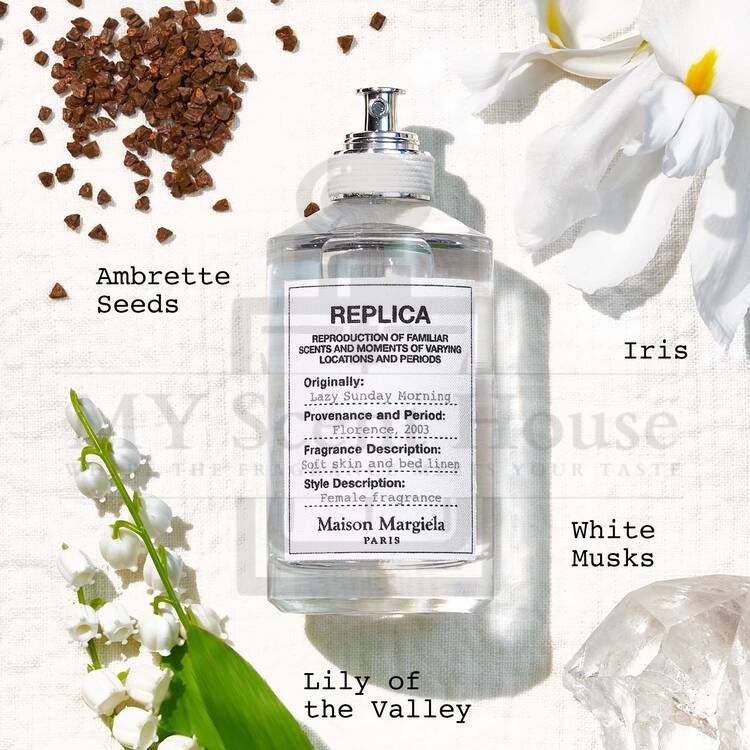 Lazy Sunday Morning by Maison Martin Margiela is a Floral Woody Musk fragrance for women and men. Lazy Sunday Morning was launched in 2013. The nose behind this fragrance is Louise Turner. Top notes are Aldehydes, Lily-of-the-Valley and Pear; middle notes are Rose, Iris and Orange Blossom; base notes are White Musk, Ambrette (Musk Mallow) and Indonesian Patchouli Leaf.